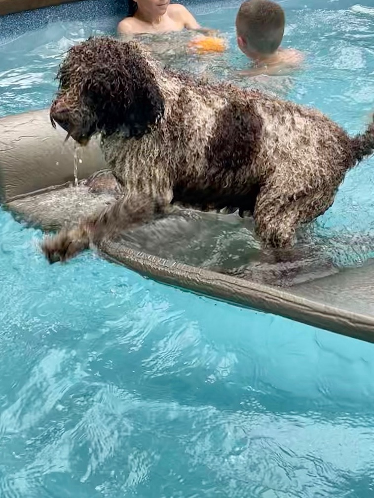 Clover is such a little lover. Every day she snuggles and kisses all the other dogs. She loves all dogs and all people, but especially children. Any time the kids are in the pool, she never misses an opportunity to join them. She loves the water and is rarely dry!